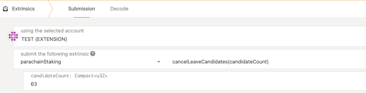 • candidateDelegationCount is larger than the number of delegators on the collator you want to unbond